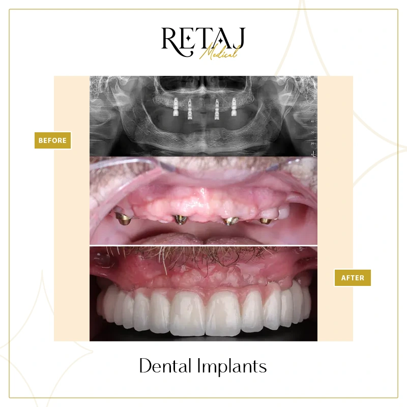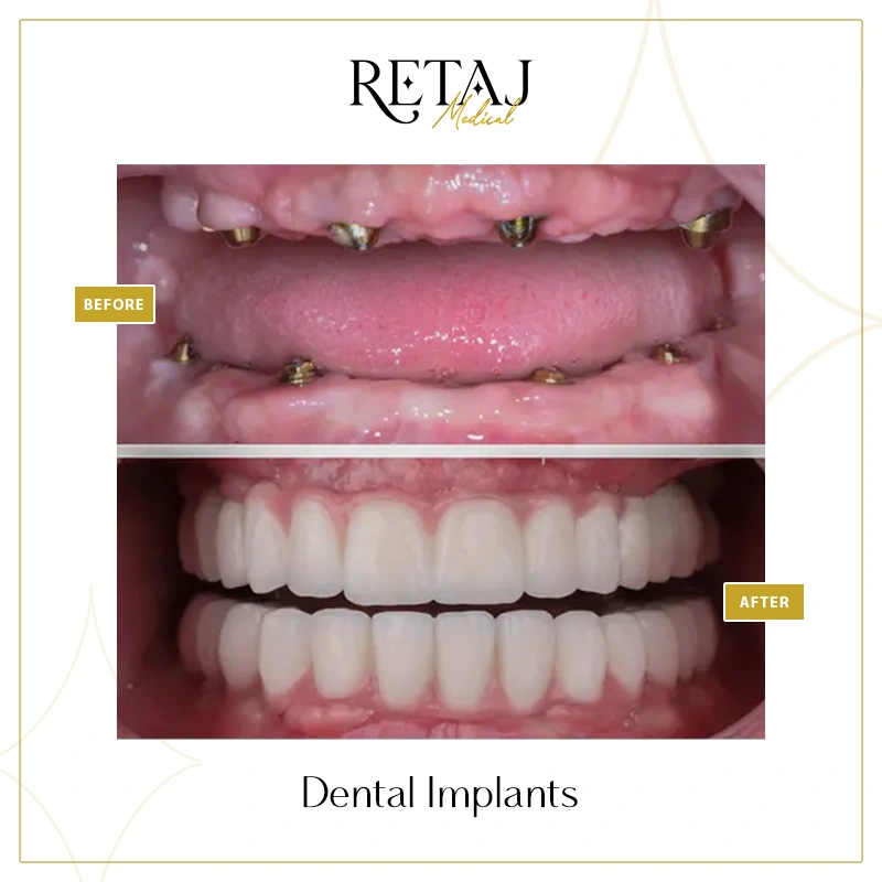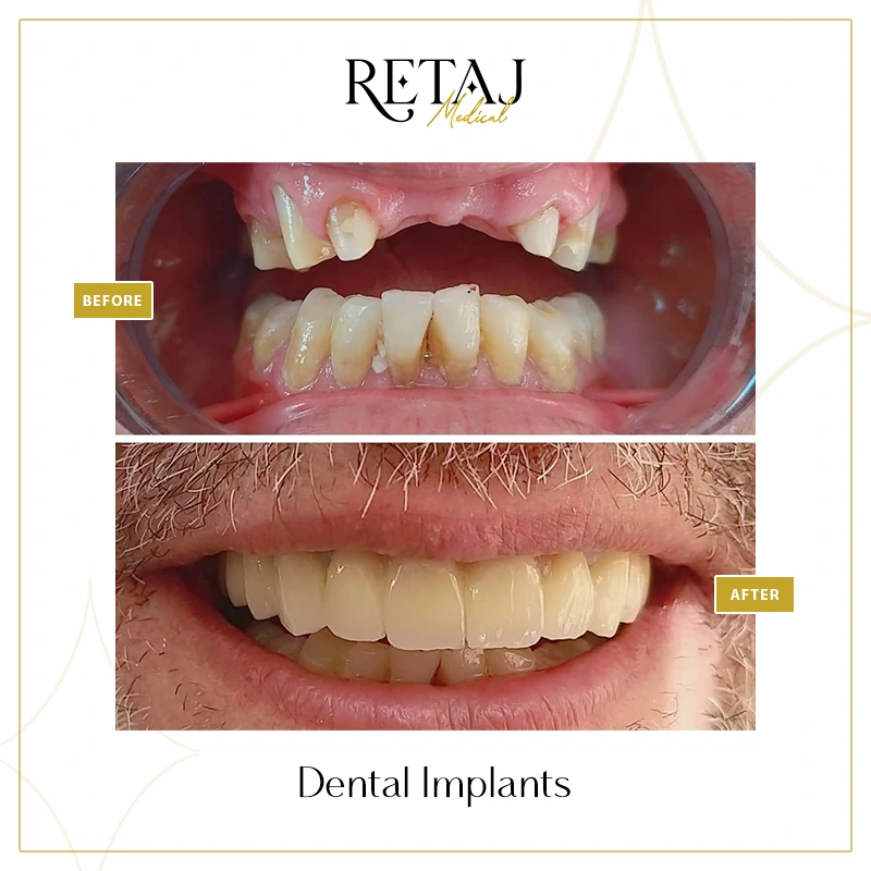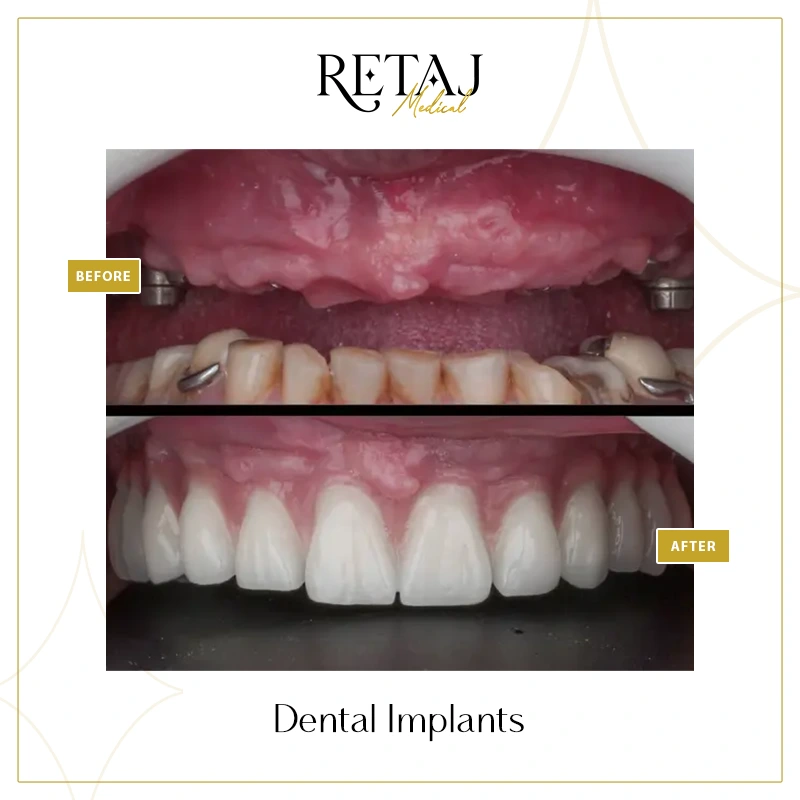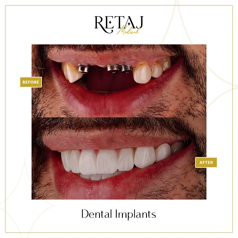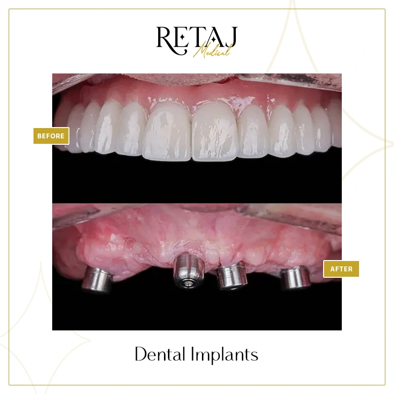 At Retaj Medical Center, we believe that a confident smile goes hand in hand with strong dental function. If you are experiencing tooth loss or searching for a permanent, natural-looking solution, dental implants offer the most reliable way to restore your smile, comfort, and self-confidence.Dental implants are surgical fixtures placed into the jawbone to replace missing teeth roots.